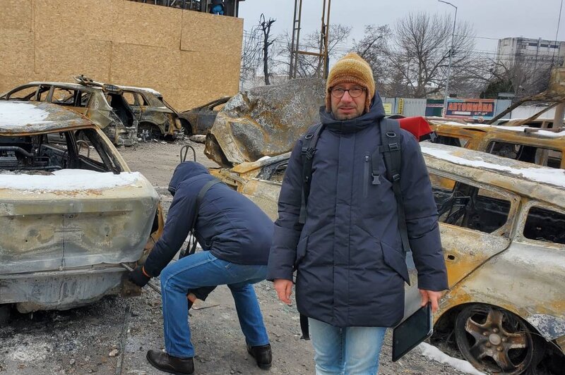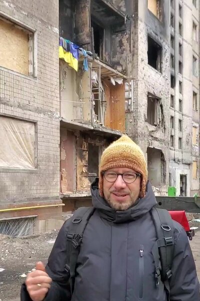 In der Hauptstadt Kyiv nimmt sich ein Freund vom militärischen Nachrichtendienst zwei Tage Zeit für mich. Er führt mich zu den Wohnblocks, die nur wenige Tage zuvor bei einem russischen Luftangriff getroffen worden waren. Wir sprechen mit Bewohnern, einer zeigt uns, was von seiner Wohnung übrig geblieben ist. Ich merke bald, dass er noch unter Schock steht. Er war von berstenden Fensterscheiben aus dem Schlaf gerissen worden. Seine Nachbarin zwei Treppen höher hat den Angriff nicht überlebt. Wir besuchen auch ihre Wohnung. Der Anblick verkohlter Wände und der Geruch nach Verbranntem lassen mich nicht mehr los.